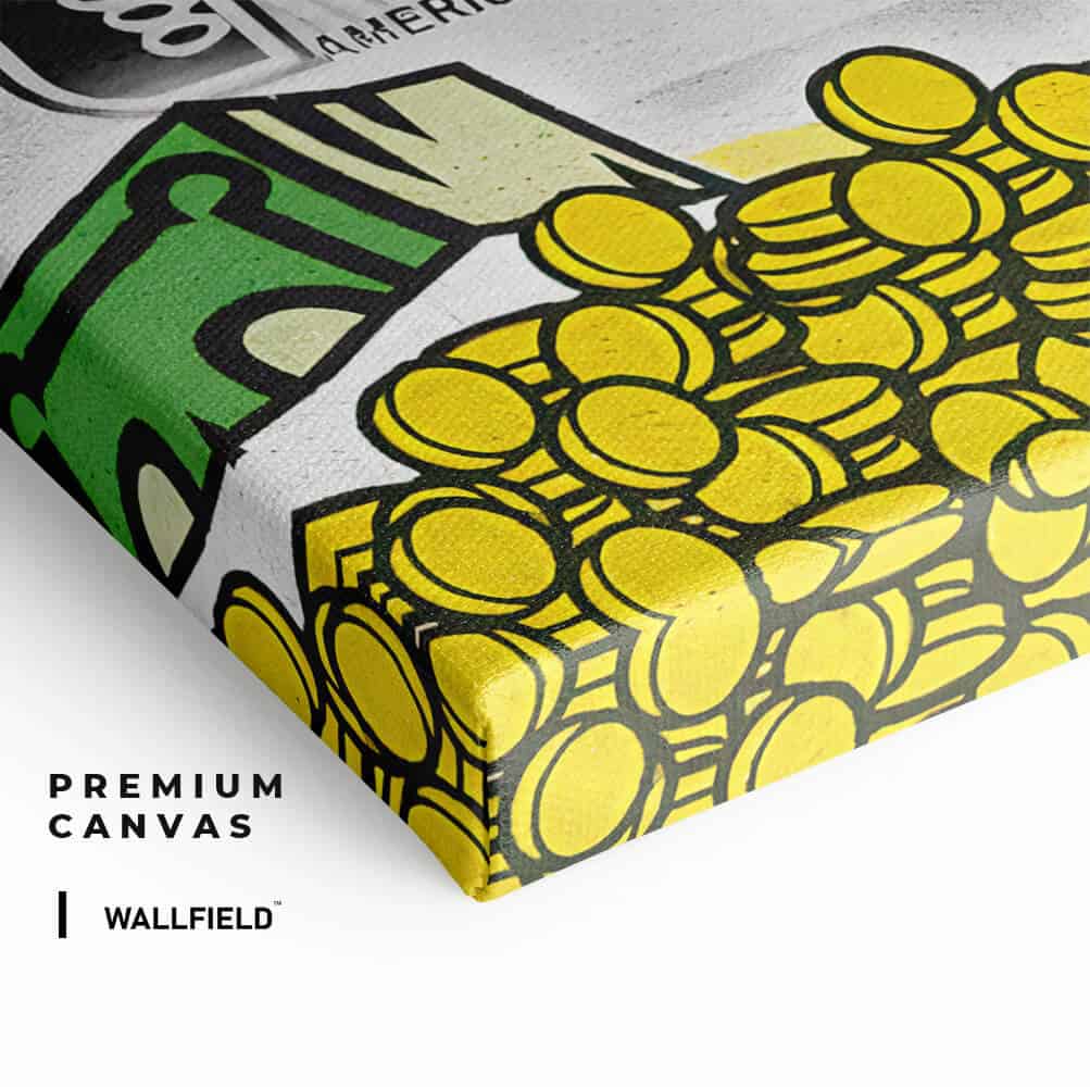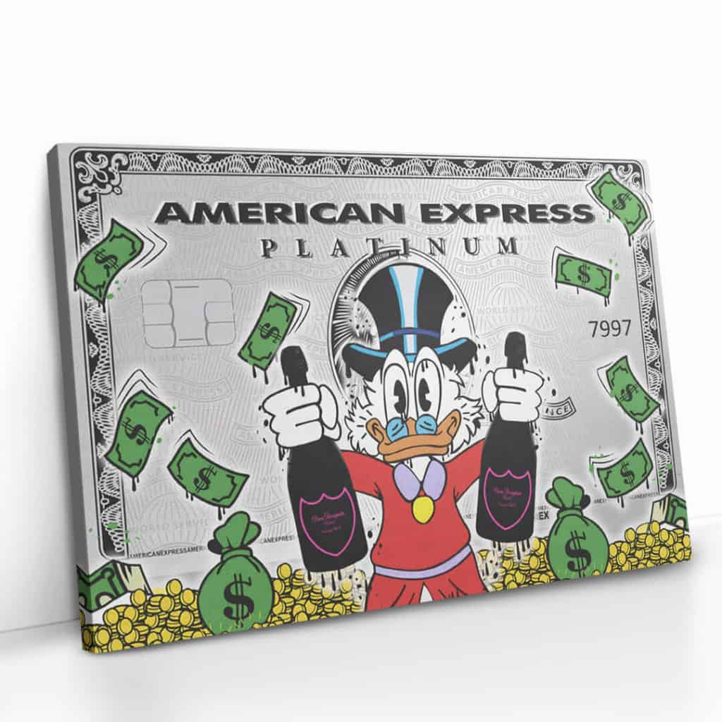 Ben je opzoek naar een speels en tegelijkertijd ook opvallend design? Dan is dit design echt iets voor jou! Je ziet de welbekende Dagobert Duck die twee Dom Perignon flessen in zijn handen heeft terwijl er overal geldbiljetten rondvliegen. Streef je er ook naar om zo rijk te worden? Dan is dit Dagobert Duck schilderij een echte must-have!