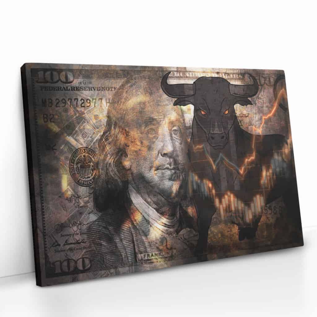 Ben jij een echte trader of heb je er interesse in? Dan is dit design helemaal iets voor jou! Dit unieke exemplaar heeft verschillende elementen waaronder de stier van Wallstreet en een dollarbiljet.