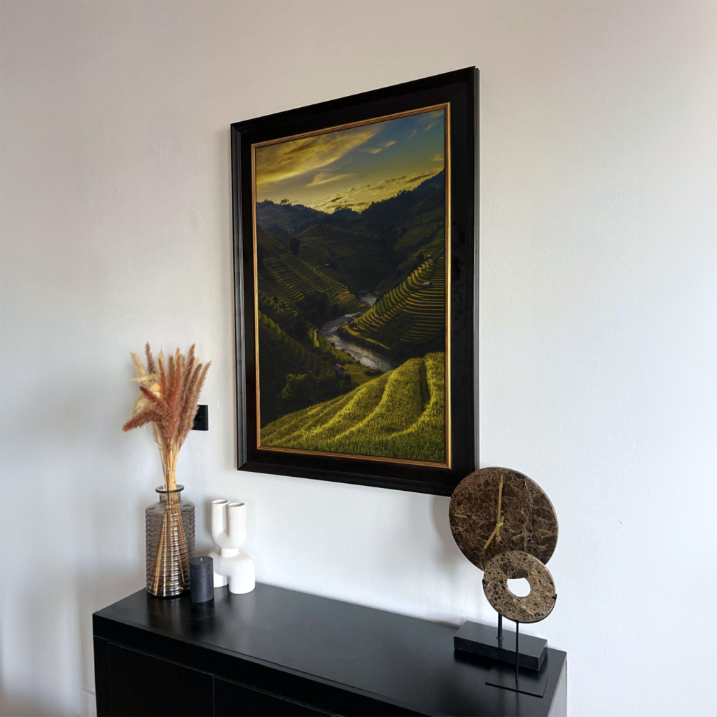Breng stijl en klasse in je interieur met onze exclusieve Art Frames. Elk kunstwerk is voorzien van een hoogwaardige ornament lijst en gedrukt op stevig 4mm MDF, waardoor het een luxe en duurzame uitstraling heeft. Dankzij de haarscherpe printkwaliteit met levendige kleuren is elk detail perfect zichtbaar, alsof je een echt kunstwerk uit het museum in huis haalt. De Art Frames zijn eenvoudig op te hangen en passen moeiteloos in elke woonstijl – van modern tot klassiek.