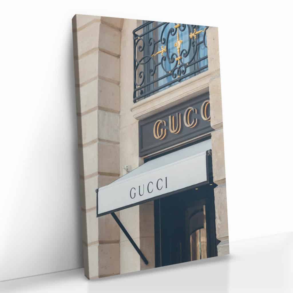 Op deze foto zie je de gevel van een Gucci winkel. Hierdoor krijgt dit design een luxe uitstraling. Ben jij een echte liefhebber van dure merken? Dan is dit het ideale design voor in jouw slaapkamer of woonkamer!