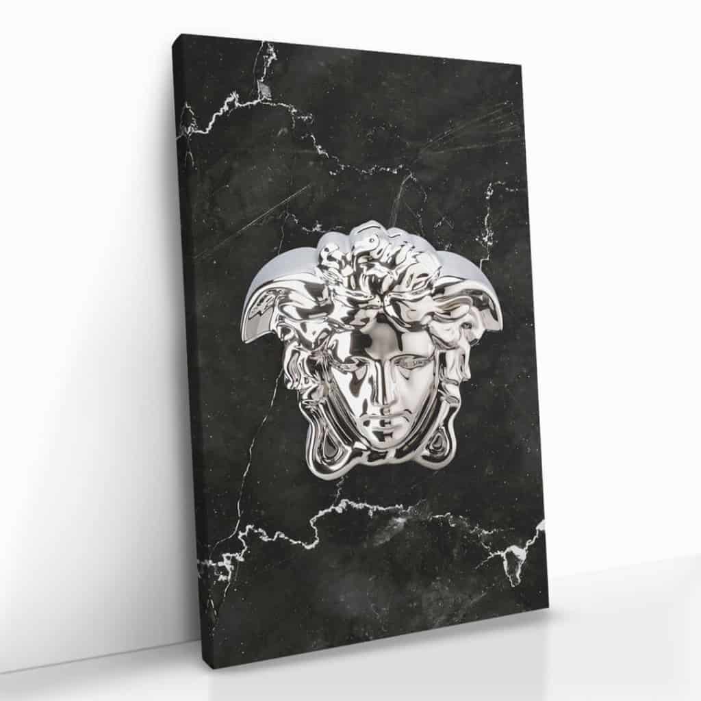 Medusa is een monsterlijke chtonische figuur uit de Griekse mythologie. Ze had een bijzondere schoonheid maar woonde helaas in een land waar de zon nooit scheen. Toch vormt het gezicht van deze bijzondere dame een prachtige foto voor in je interieur! Door de mooie donkere marmeren achtergrond in combinatie met de zilveren Medusa creëert het een luxe uitstraling die perfect is voor in een modern interieur.